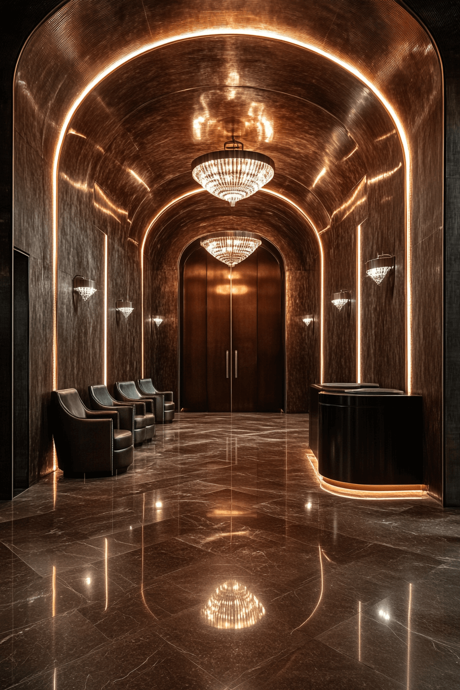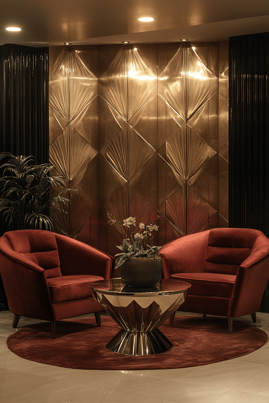 Bold Arches & Angles embrace symmetry and structure in Neo Deco interior design. Grand archways, angular mirrors, and dramatic moldings create a visual rhythm that’s both commanding and artistic. These elements frame your space like a modern gallery. The interplay of curves and edges reflects classic Deco design reinterpreted through clean geometry. It’s ideal for creating movement in even the simplest spaces. Tap to bring architectural energy into your interiors!