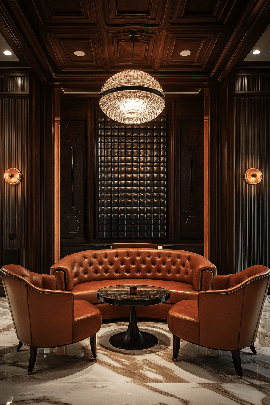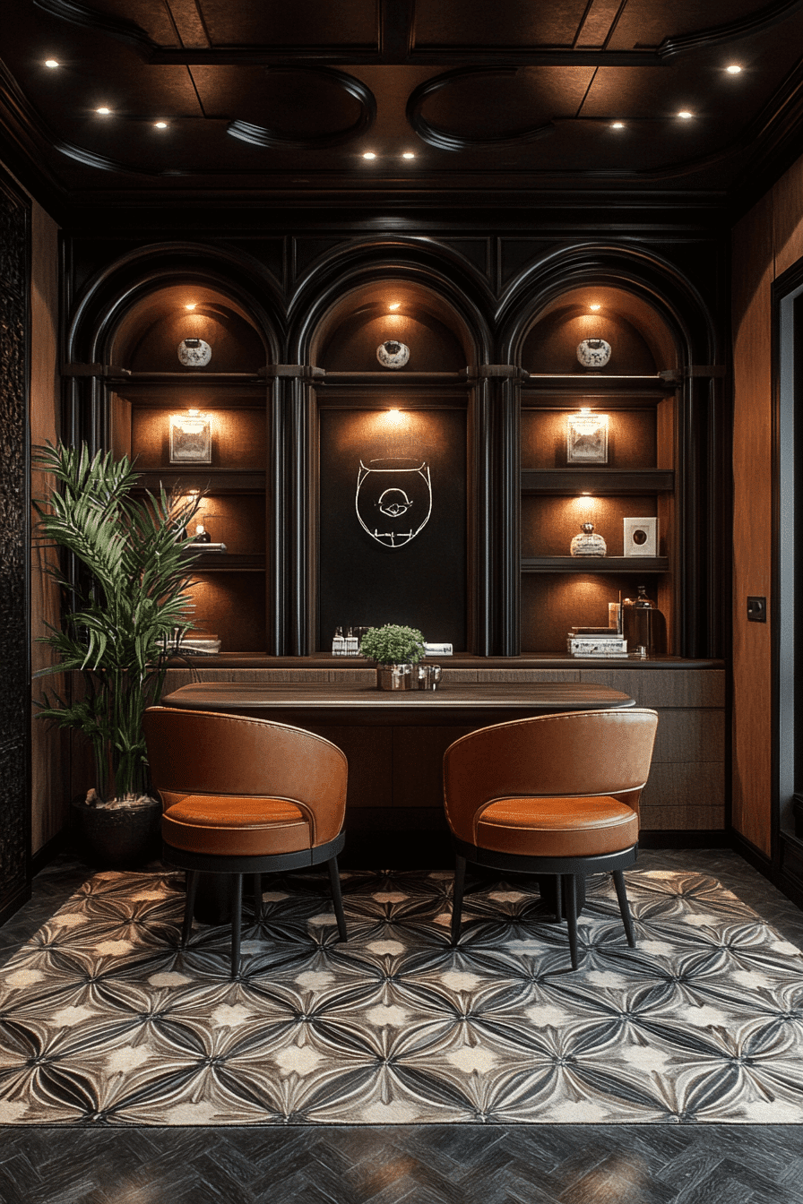 Architectural Art Deco Echo captures the spirit of classic Deco design through structural elements. Think fluted columns, tiered ceilings, or stepped wall paneling reimagined for today. These architectural features add presence and permanence. Paired with modern lighting and color palettes, the look feels grounded and fresh. This approach turns the entire space into a design element. Click to echo Deco through structure and form!