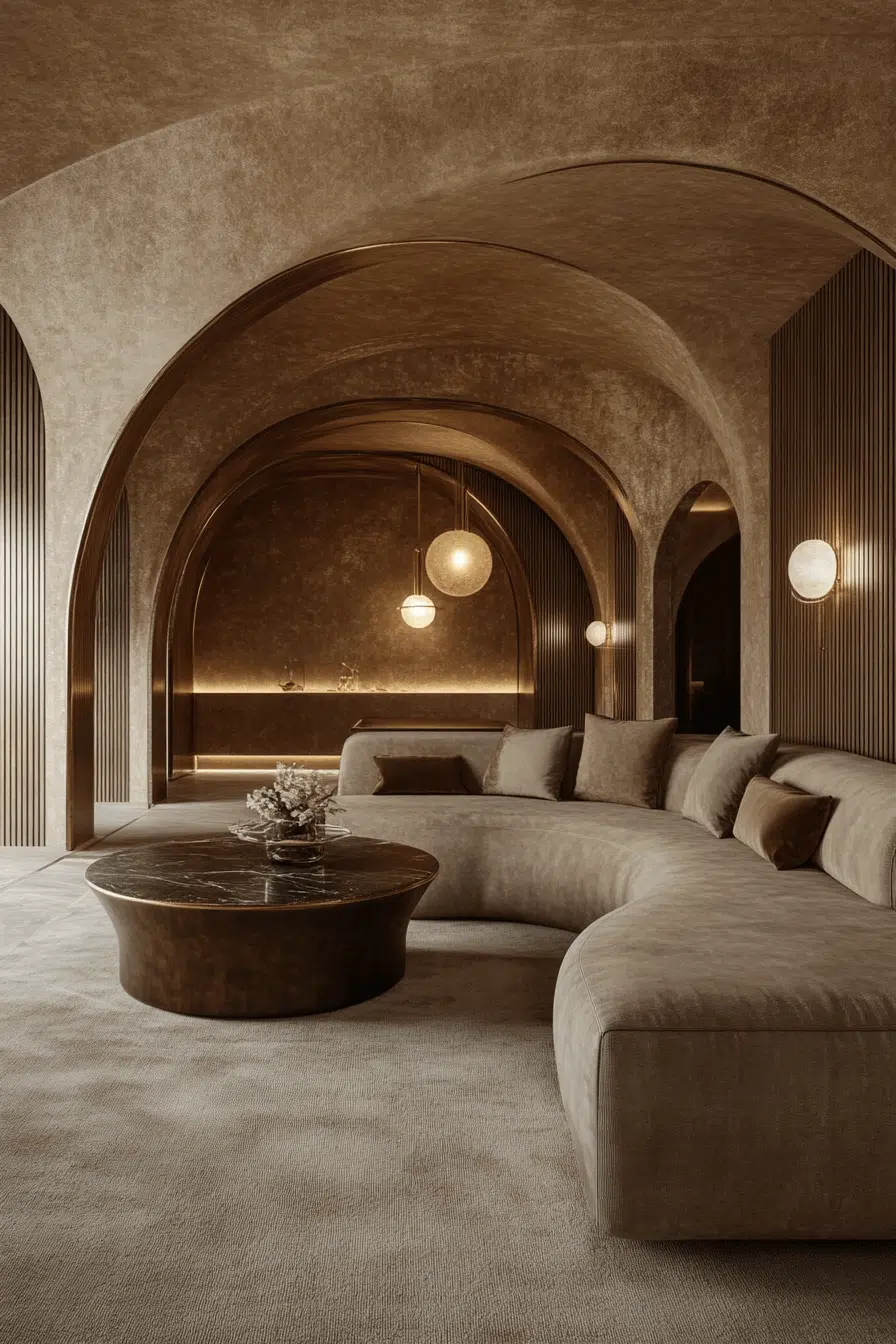 Curved Geometry Revival highlights the smooth, rounded forms central to Neo Deco interior design. This style brings softness to bold spaces with arched doorways, circular mirrors, and gently curved furniture. It balances luxury with comfort, evoking glamour while remaining livable. Light reflects beautifully off smooth, sculptural surfaces, enhancing flow and sophistication. These curves draw on classic Art Deco but feel distinctly fresh and modern. Tap to explore how curves redefine elegance!