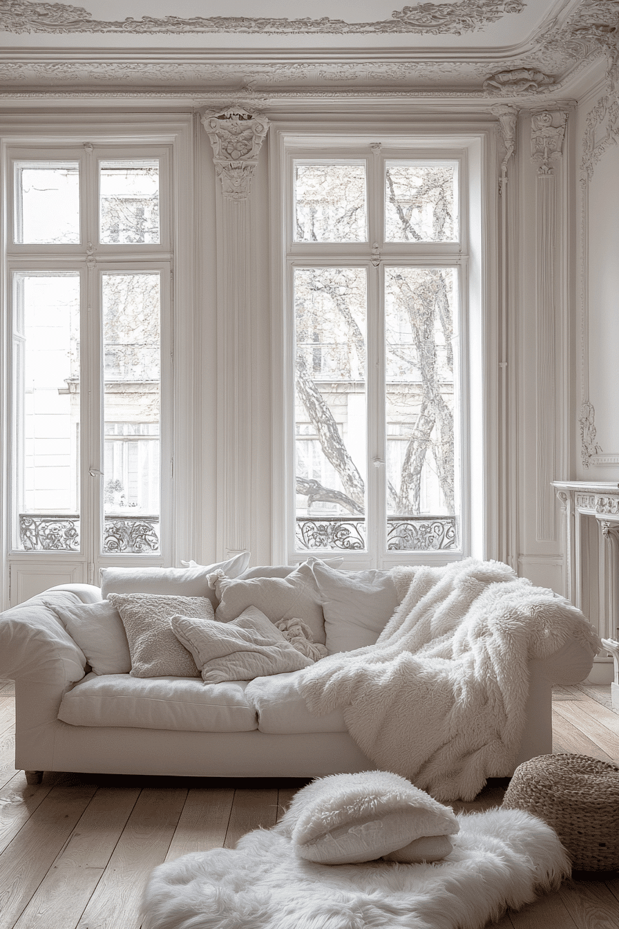 Monochrome Classic Revival revives neoclassical interior elegance using a single-color scheme to unify intricate details and furnishings. The monochrome palette allows cornices, paneling, and architectural lines to stand out with clarity and intention. This styling emphasizes the form and texture over color, creating a calming, upscale ambiance. It feels historic and current all at once, giving the home a fresh yet grounded identity. With layered tones and subtle variation, the look remains dynamic. Tap to explore how monochrome brings timeless design to life.