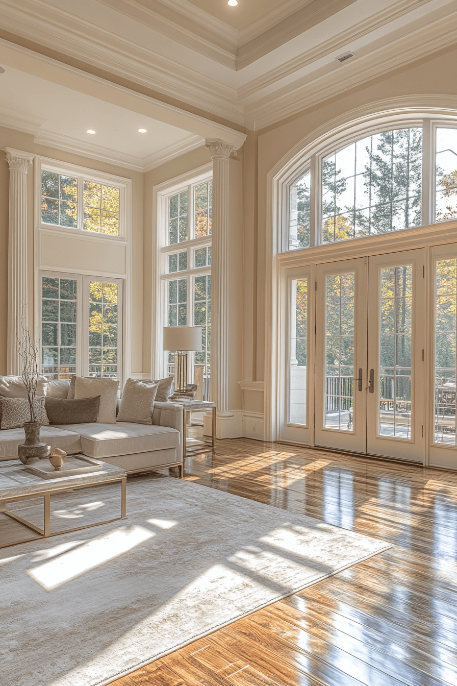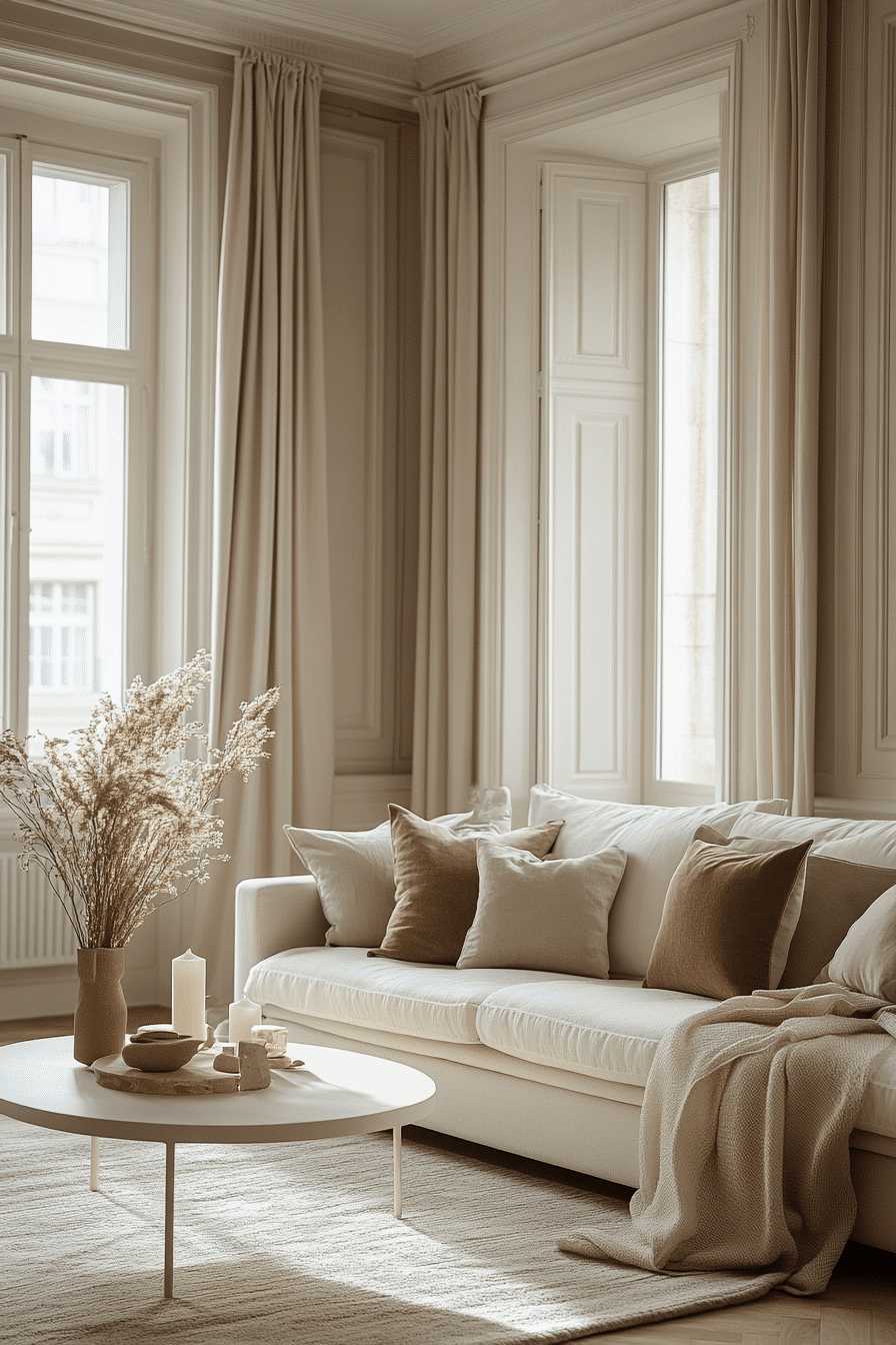 Soft Beige Grandeur embraces the timeless elegance of neoclassical interior design with a muted, monochromatic palette that enhances the architecture. The subtle warmth of beige highlights intricate moldings and classical symmetry without overwhelming the eye. This serene base creates the perfect canvas for layered textures and refined decor. Paired with gold accents or crisp white trims, the effect feels regal yet understated. It allows the grandeur of the room to shine through in a calm, balanced way. Tap here to explore the beauty of beige in neoclassical design.