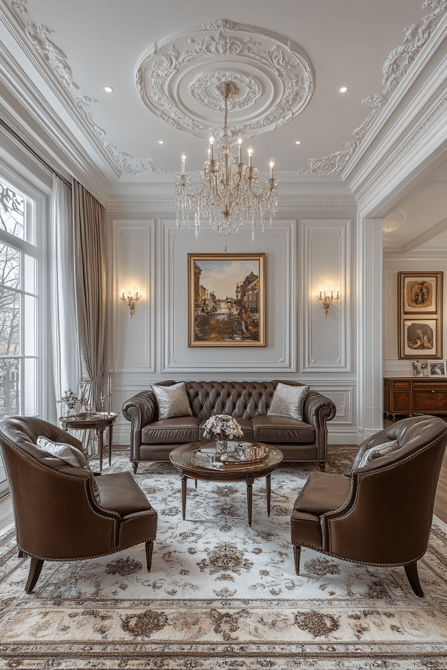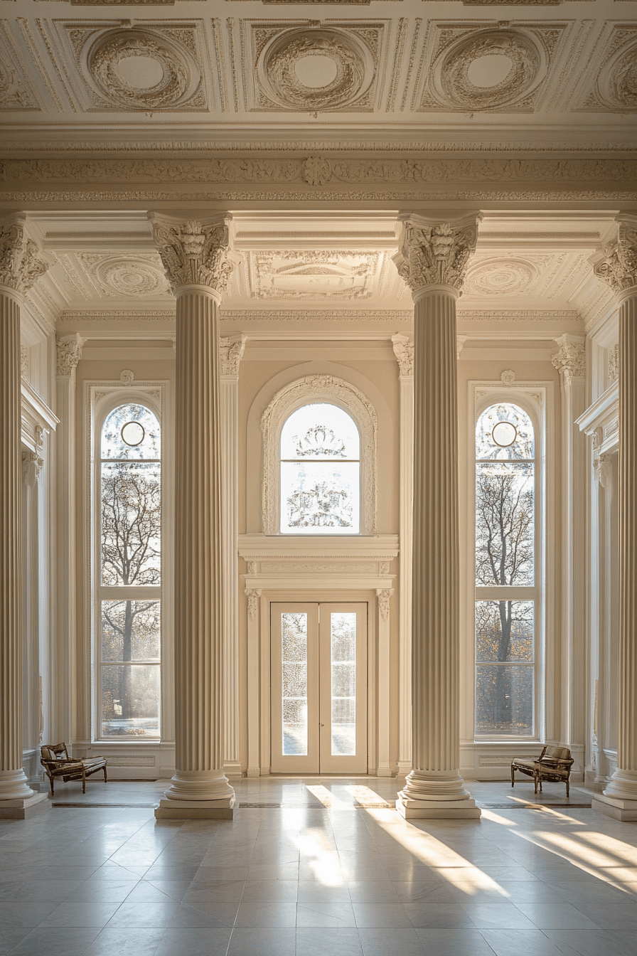 Ornamental Trim Balance brings structure and beauty to neoclassical interiors through thoughtful use of decorative moldings and cornices. The key is proportionality—using just enough embellishment to frame without overwhelming. Painted to match or subtly contrast, the trim acts as architecture’s jewelry. It defines zones within the space and elevates the ordinary. Paired with simple furnishings, it feels both rich and controlled. Tap here to explore the power of ornamental detail.