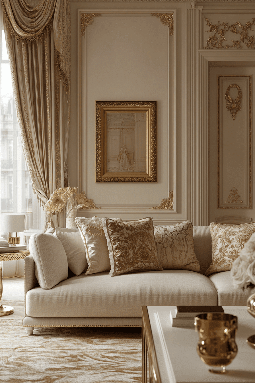 Neutral Palette Precision relies on subtlety and restraint to define the neoclassical interior with elegance. Creams, taupes, and warm greys act as a refined backdrop to intricate wall detailing and classical furnishings. The limited color range emphasizes form and texture while promoting a calm, unified look. It’s an approach that’s both timeless and sophisticated. When layered thoughtfully, neutral tones feel rich and immersive. Click to discover the precision of a perfect palette.