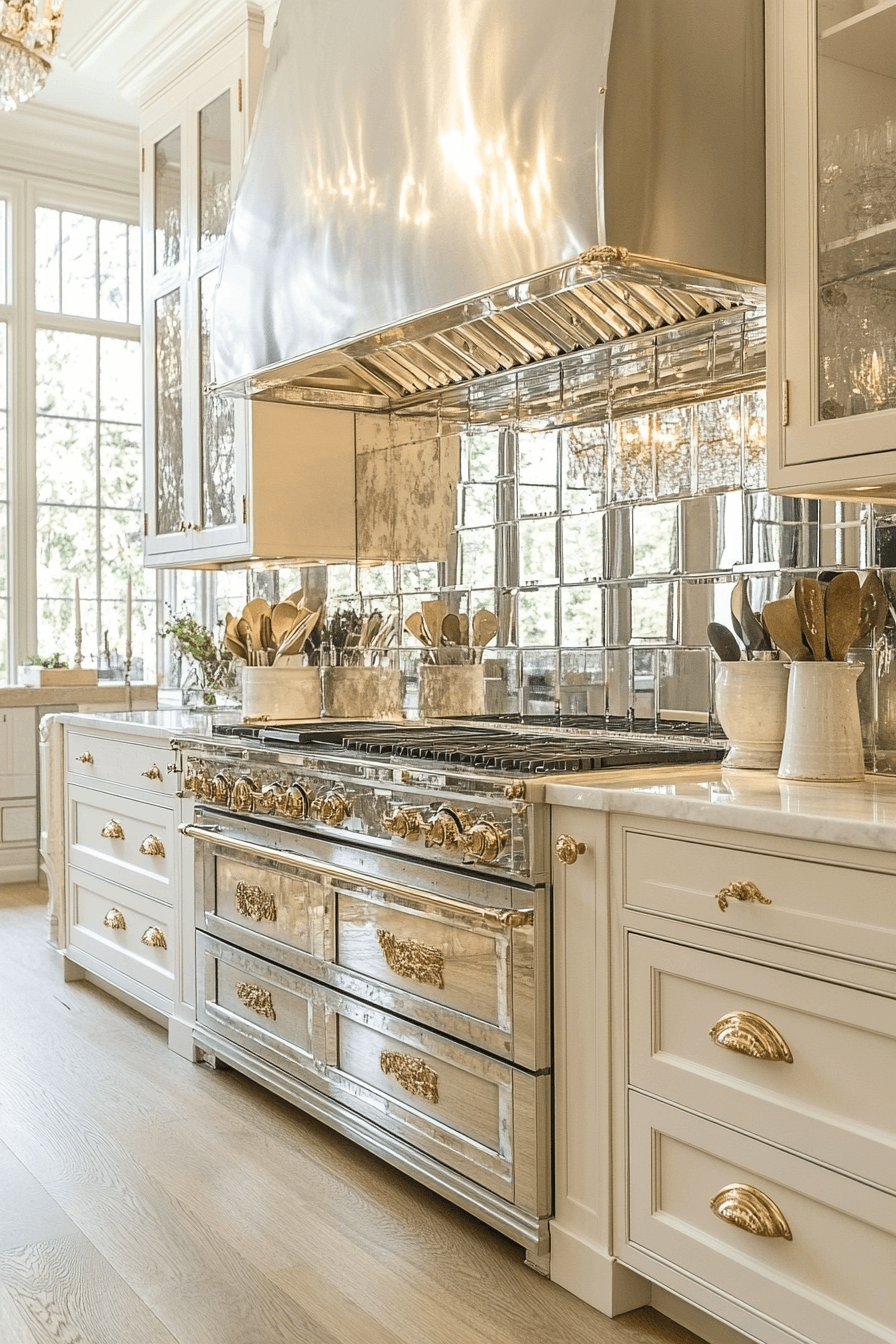 Antique mirror backsplashes introduce light and depth to neoclassical kitchen design with a vintage twist. The distressed look adds dimension and warmth to otherwise polished surfaces. Reflective but not too modern, these mirrors fit beautifully with marble, wood, and brass. They create the illusion of space while contributing to the overall ambiance. A mirrored backsplash adds drama in the most sophisticated way. Click for reflective design that feels classic yet fresh!