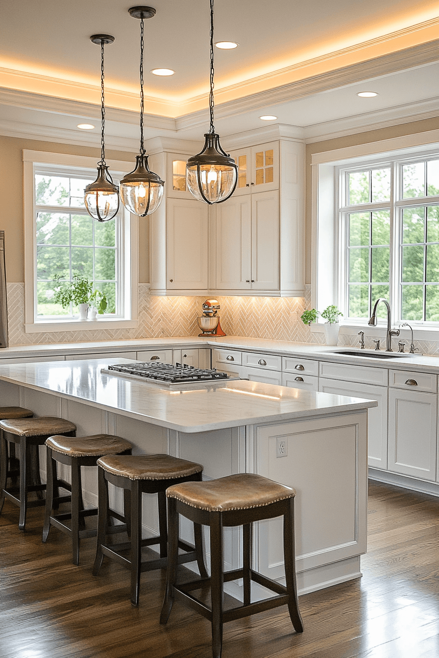 Crystal pendants bring sparkle and refinement to neoclassical kitchen design, floating like jewelry above the island or dining area. Their classic shimmer enhances the space without overwhelming it. Whether in gold, silver, or brass, the frames complement the kitchen’s elegant finishes. They reflect light beautifully, creating a warm and inviting glow. This lighting style is a statement of timeless grace. Click to illuminate your space with brilliance!