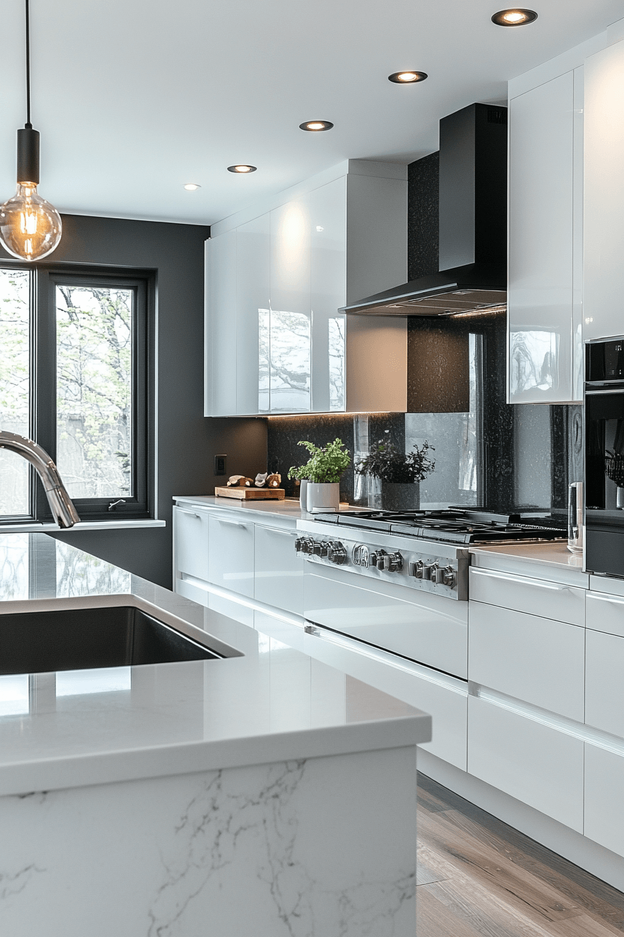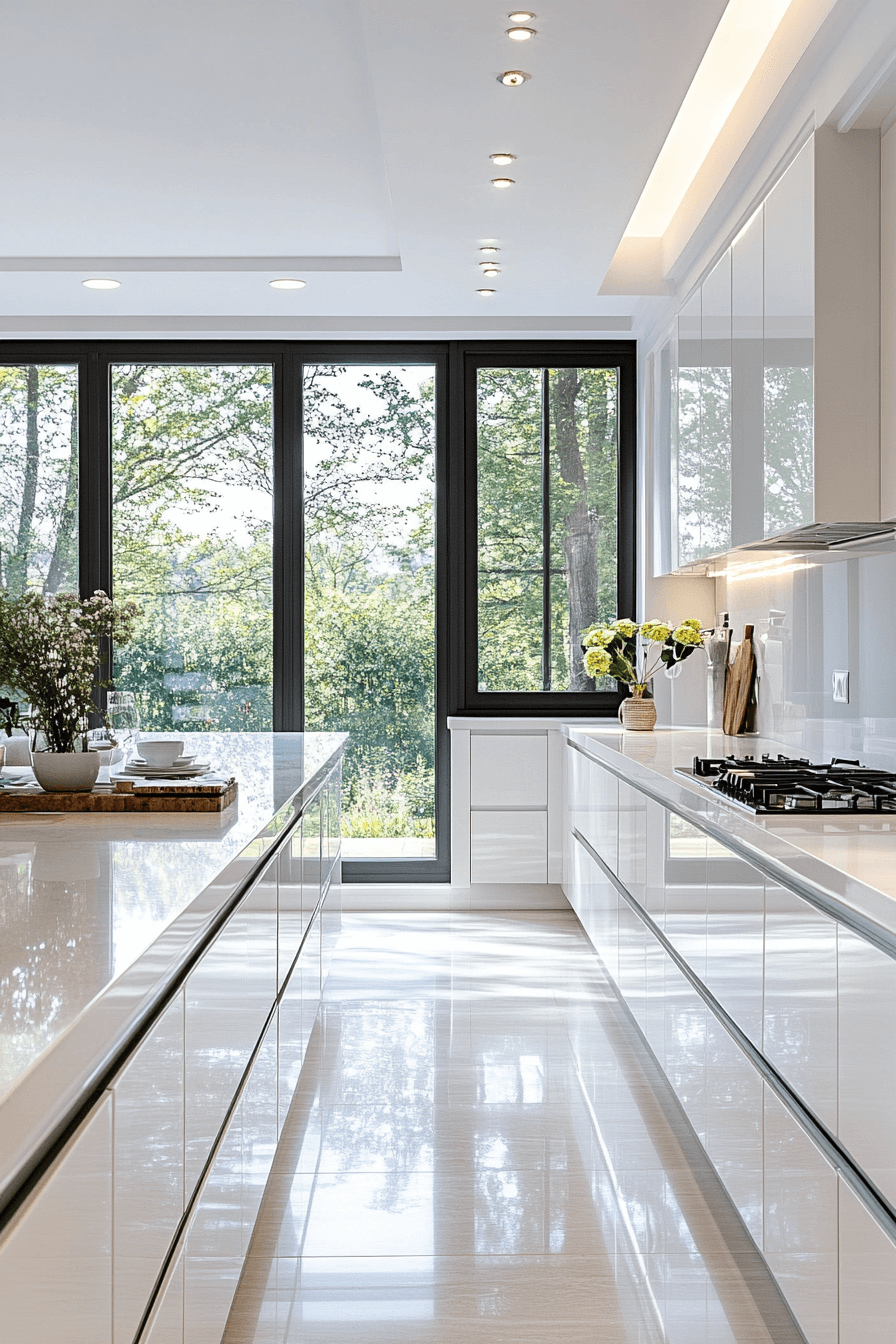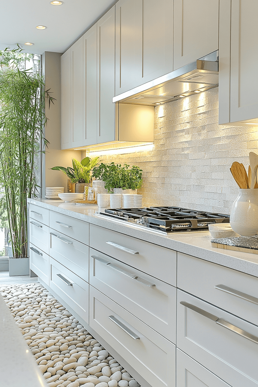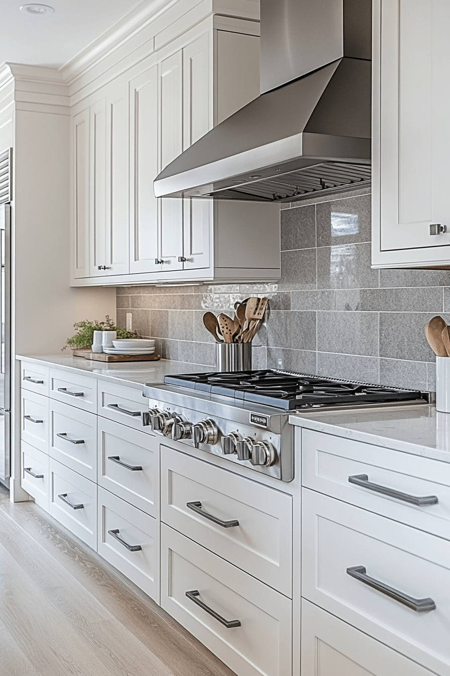 Cool and crisp, arctic tones bring a fresh perspective, and off white kitchen cabinets in this hue create a clean, refined atmosphere. The cooler undertone works especially well in ultra-modern kitchens. Contrast them with black countertops or deep navy walls for an eye-catching look. These cabinets are all about bold simplicity. Your kitchen will feel sharp, chic, and intentional. Explore fresh and modern off white kitchen cabinets that turn heads!