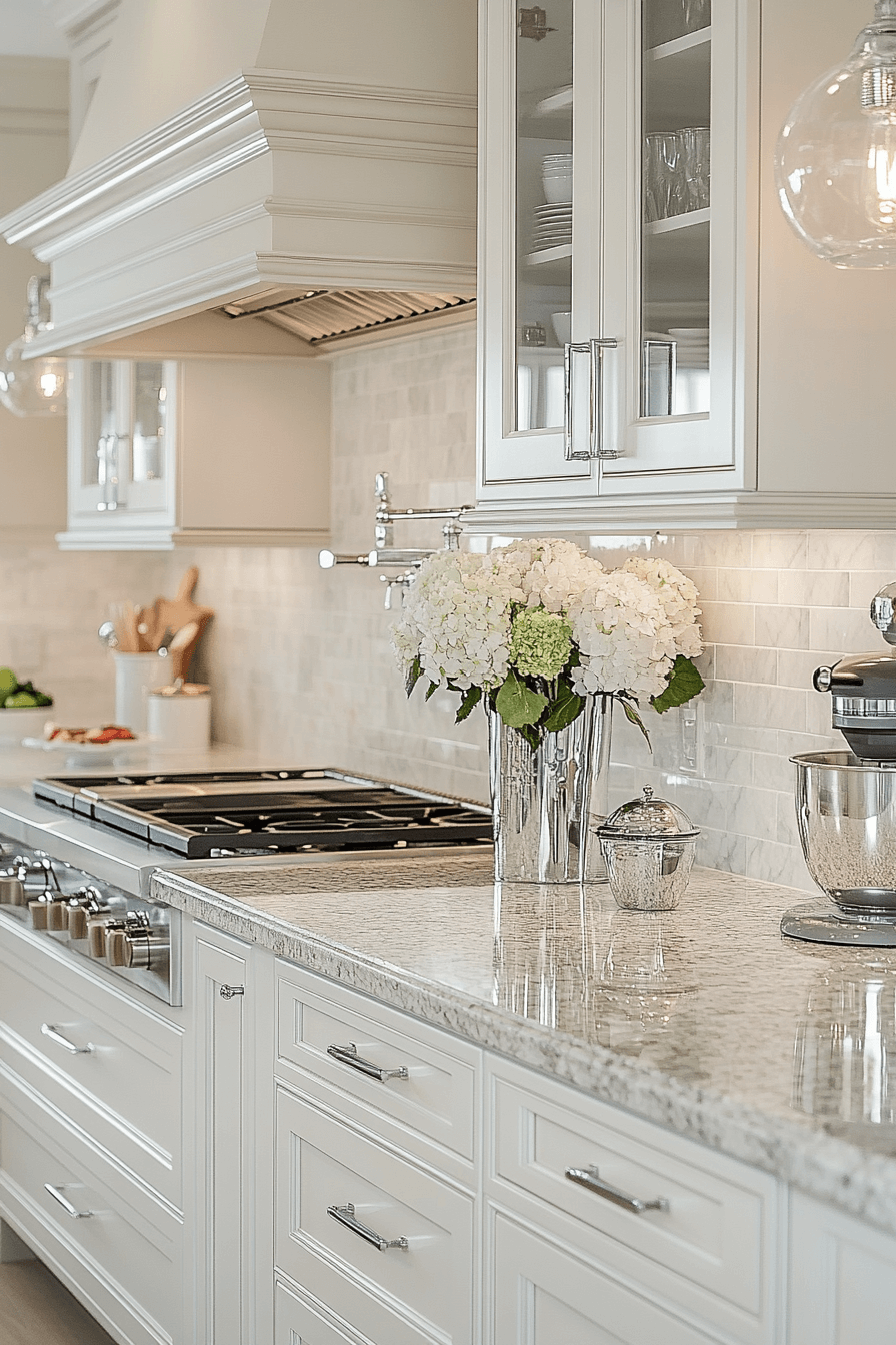Iridescent touches make a design feel magical, and off white kitchen cabinets with an opal-inspired finish do exactly that. The subtle shimmer changes throughout the day, adding depth and beauty from every angle. These are for homeowners who want more than just basic cabinetry. Pair with metallics or glass for a kitchen that sparkles with sophistication. It’s where charm meets light play. Click now to discover captivating off white kitchen cabinets with a luminous twist!