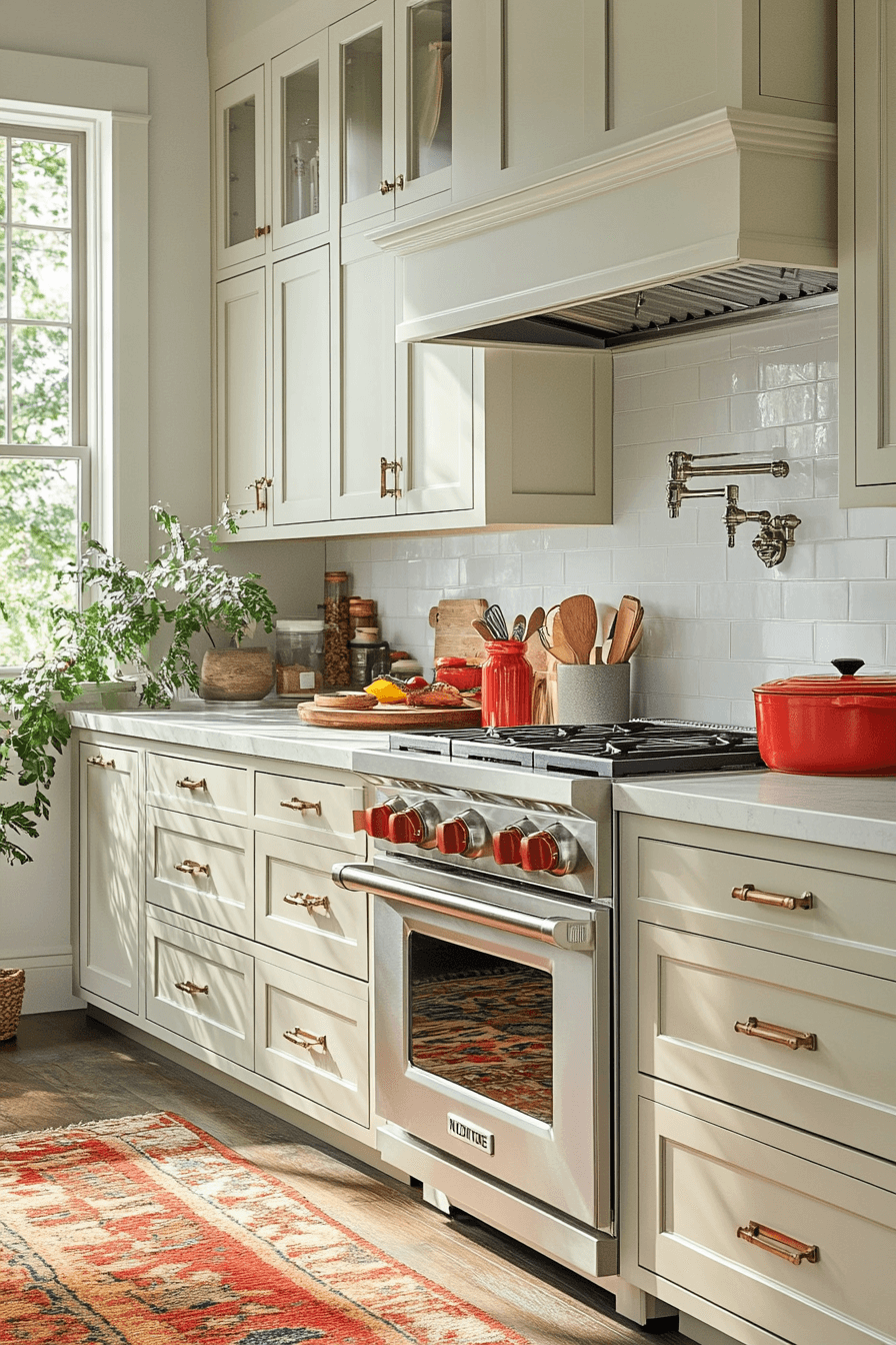 A creamy texture can bring joy to any kitchen, and off white kitchen cabinets that mimic the fluffiness of marshmallow do it with charm. These cabinets invite color and whimsy while still keeping the room grounded in elegance. They’re perfect for family-focused kitchens where warmth and style coexist. Add pops of color or keep it neutral—either way, it works. Comfort never looked this good. Tap to bring playful elegance to your kitchen with off white kitchen cabinets!