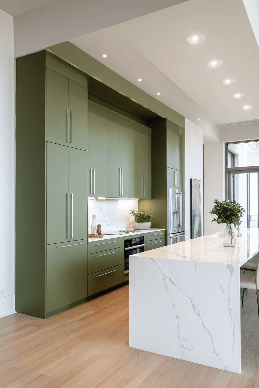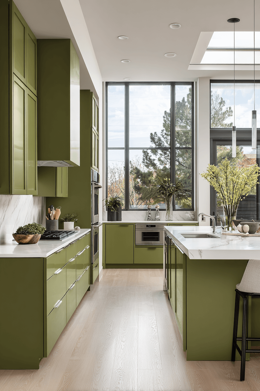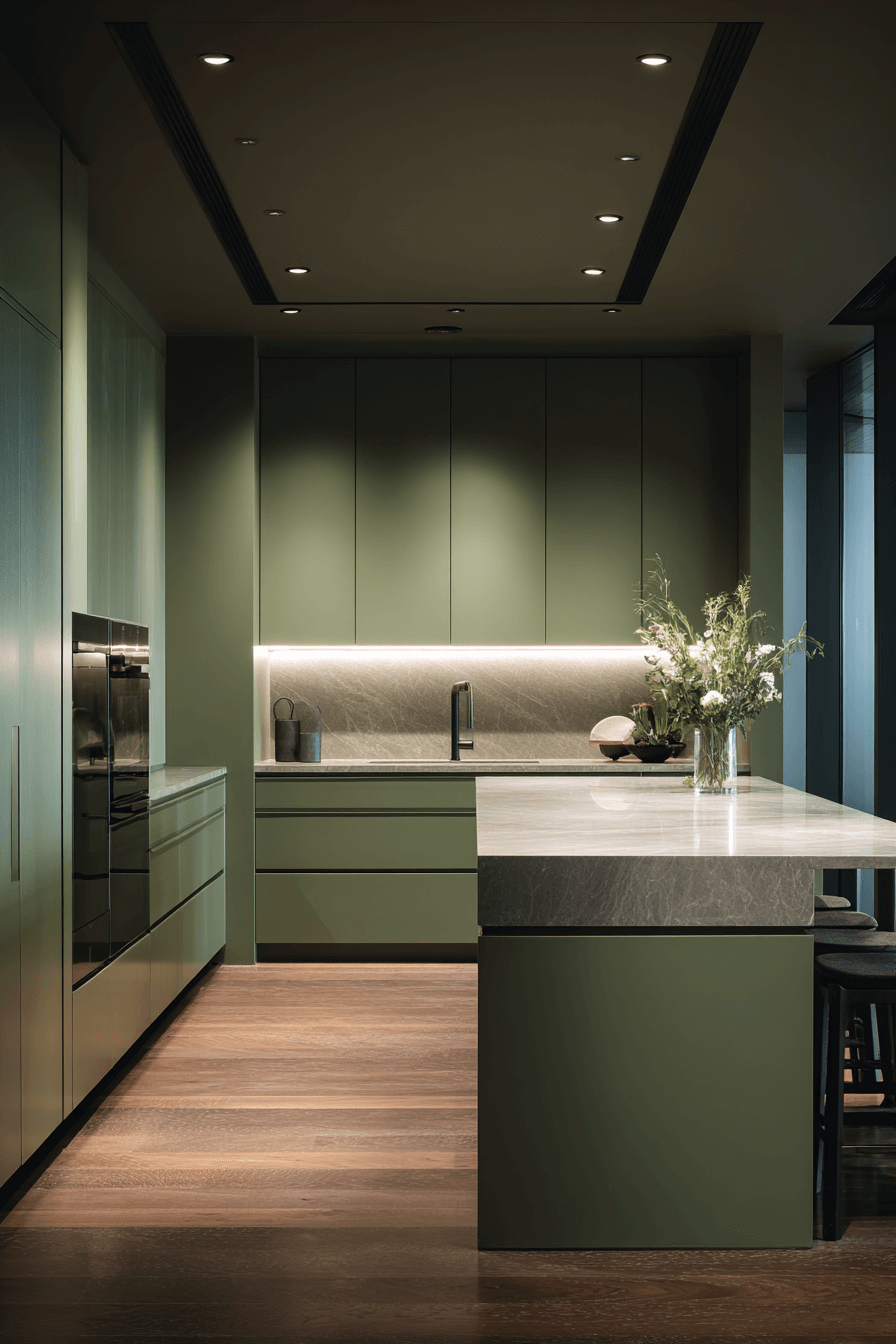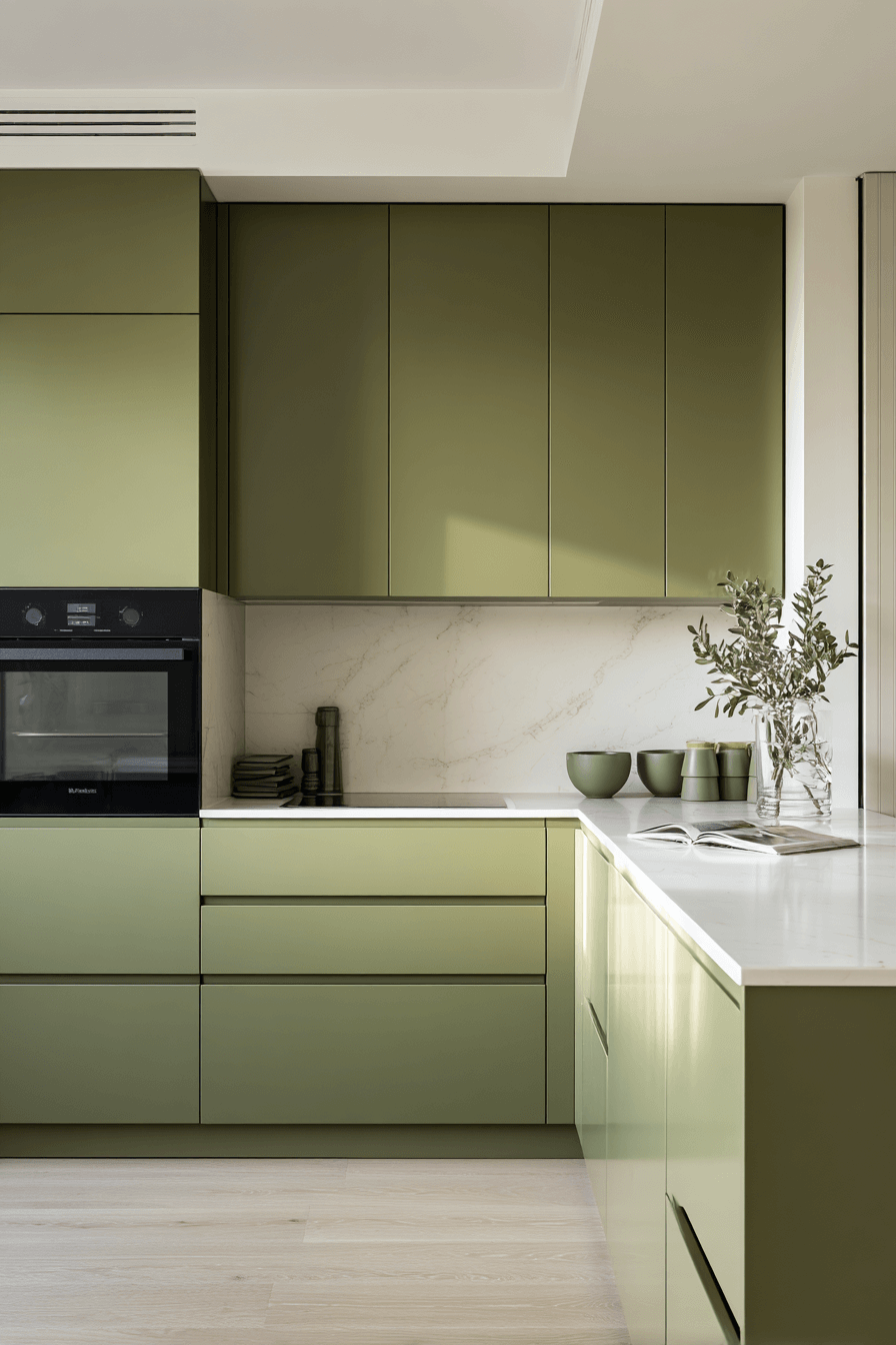 2. Sleek Olive Green Kitchen Style