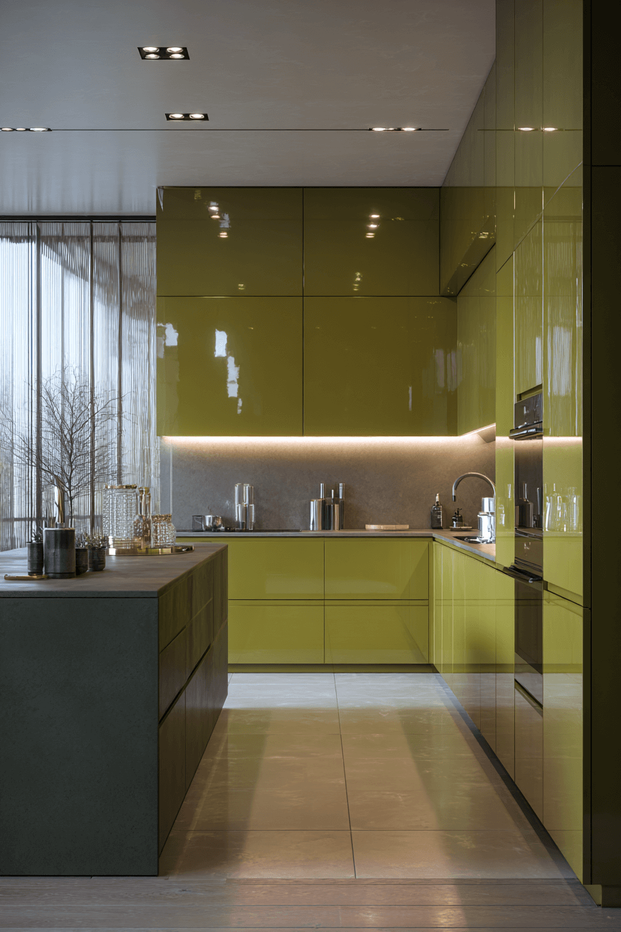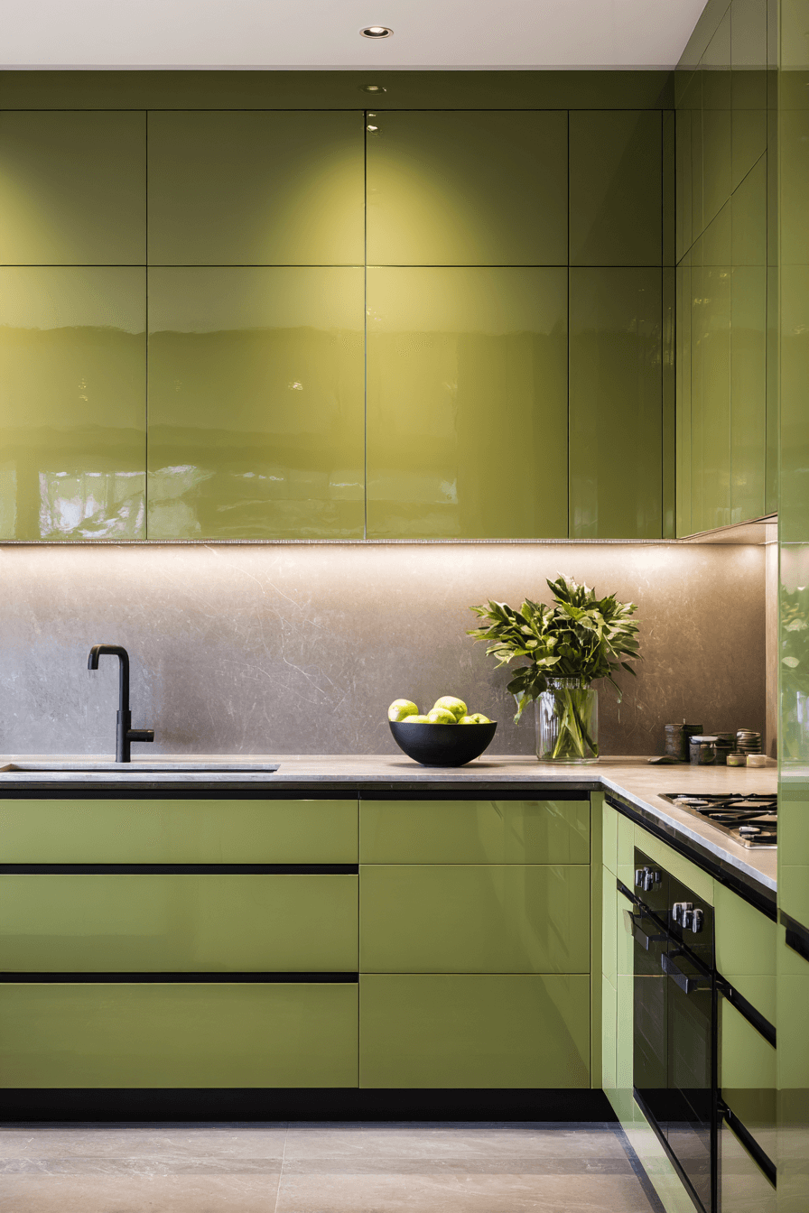 20. High-Gloss Olive Green Kitchen