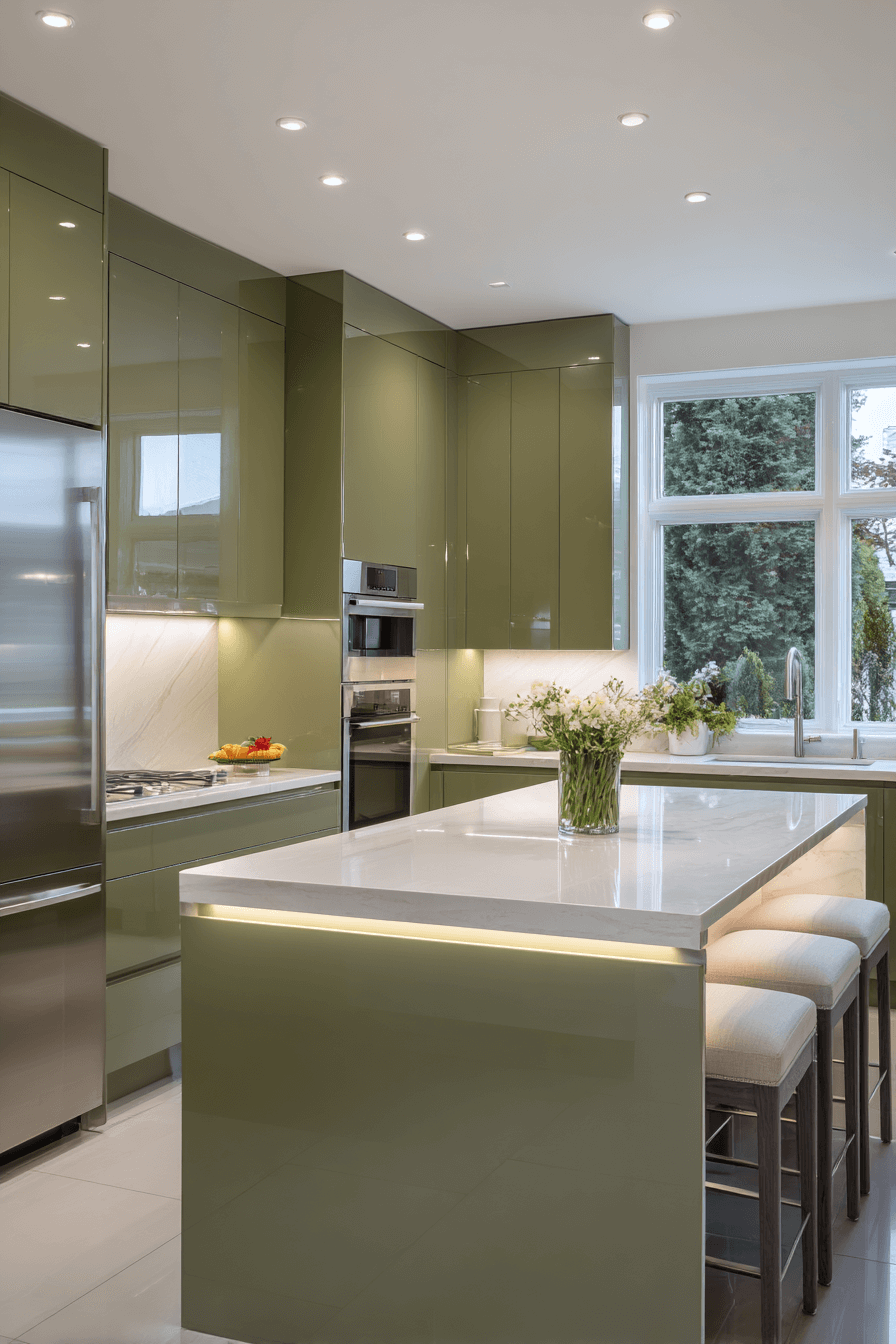 20. High-Gloss Olive Green Kitchen