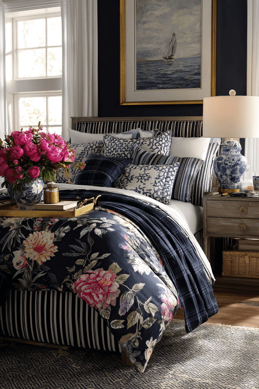 16. Pattern Play Preppy Bedroom