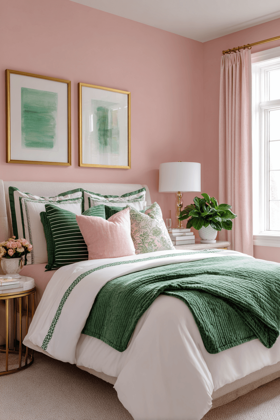 Pink and green together instantly create that iconic, playful preppy energy. In a preppy bedroom, this combo feels fresh, youthful, and full of personality without losing sophistication. Think soft blush walls paired with emerald accents or patterned bedding that ties the two together beautifully. The reason it works so well in a preppy bedroom is because the contrast feels bold yet polished at the same time. Add crisp white trim and gold hardware to keep everything looking intentional and elevated. Tap to bring this cheerful color pairing into your space.