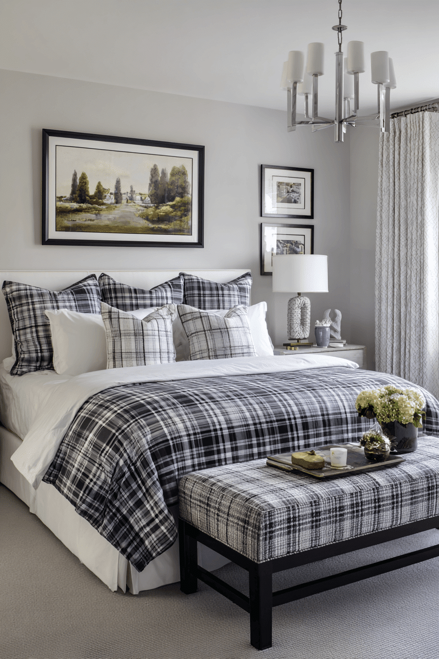 8. Polished Plaid Bedroom