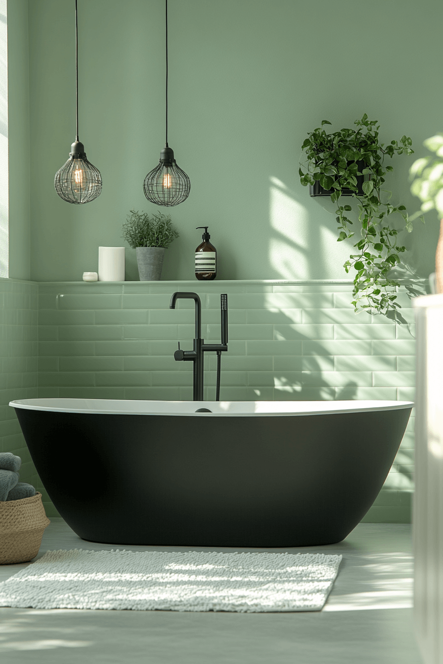 A sage green and black bathroom makes a refreshing statement when bold accents are embraced. Think sage tile paired with striking black grout or fixtures for eye-catching contrast. The reason it works is that sage provides calm energy, while black adds sharp definition. Balanced lighting ensures the space feels bright and open. The result is a sage green and black bathroom that feels both invigorating and stylish. Click to refresh your bathroom with this confident color combo.