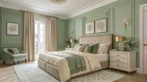 If you want a space that turns heads, a sage green and black bathroom delivers striking impact. A feature wall in sage paired with dramatic black fixtures instantly commands attention. The pairing works because sage keeps the bold black elements feeling stylish rather than overpowering. Clean lines and simple decor let the color contrast shine. The overall sage green and black bathroom feels confident, modern, and beautifully curated. Click to design your own statement space.
