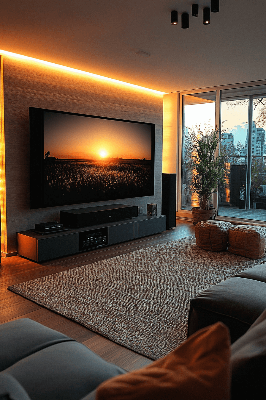 The media room takes a sleek turn with a Scandinavian Japanese interior that fuses comfort, style, and innovation. Minimalist furnishings in muted tones create a cinematic yet calming setting. Hidden technology ensures that aesthetics stay pure and uncluttered. Every detail, from lighting to seating, balances beauty with purpose.