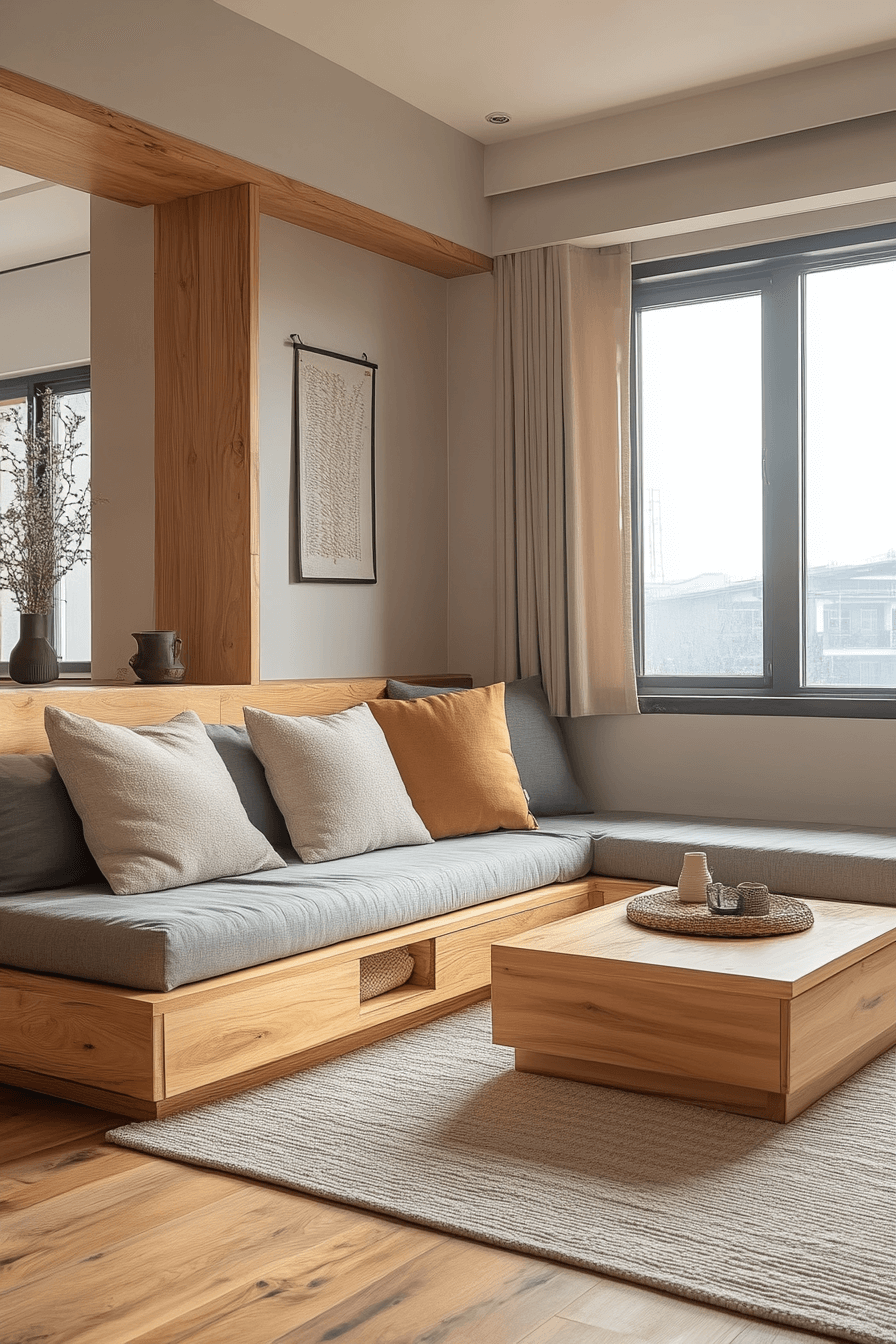 A Scandinavian Japanese interior reading nook is the perfect escape for book lovers who crave quiet beauty. Floor cushions, soft lighting, and smooth wooden accents foster pure relaxation. Minimal shelving keeps the space uncluttered, highlighting the calm atmosphere. Every corner radiates serenity and warmth, making it ideal for peaceful afternoons.