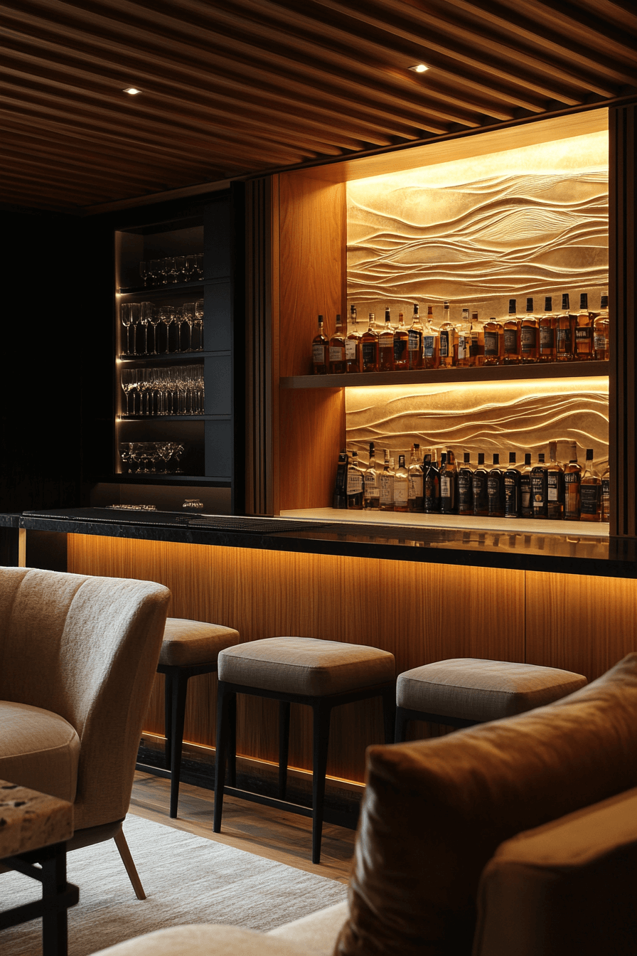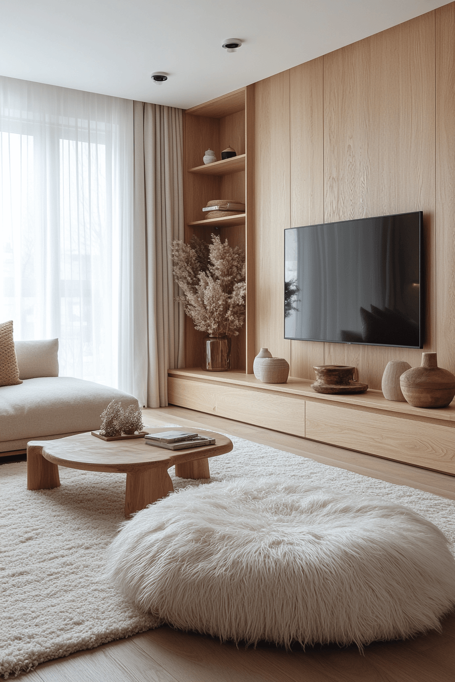 An entertainment lounge infused with Scandinavian Japanese interior sophistication invites pure relaxation. Plush seating and sleek design set the stage for both comfort and elegance. Minimal art and natural textures infuse warmth into the modern layout. Every feature feels thoughtful, blending technology with tranquility.