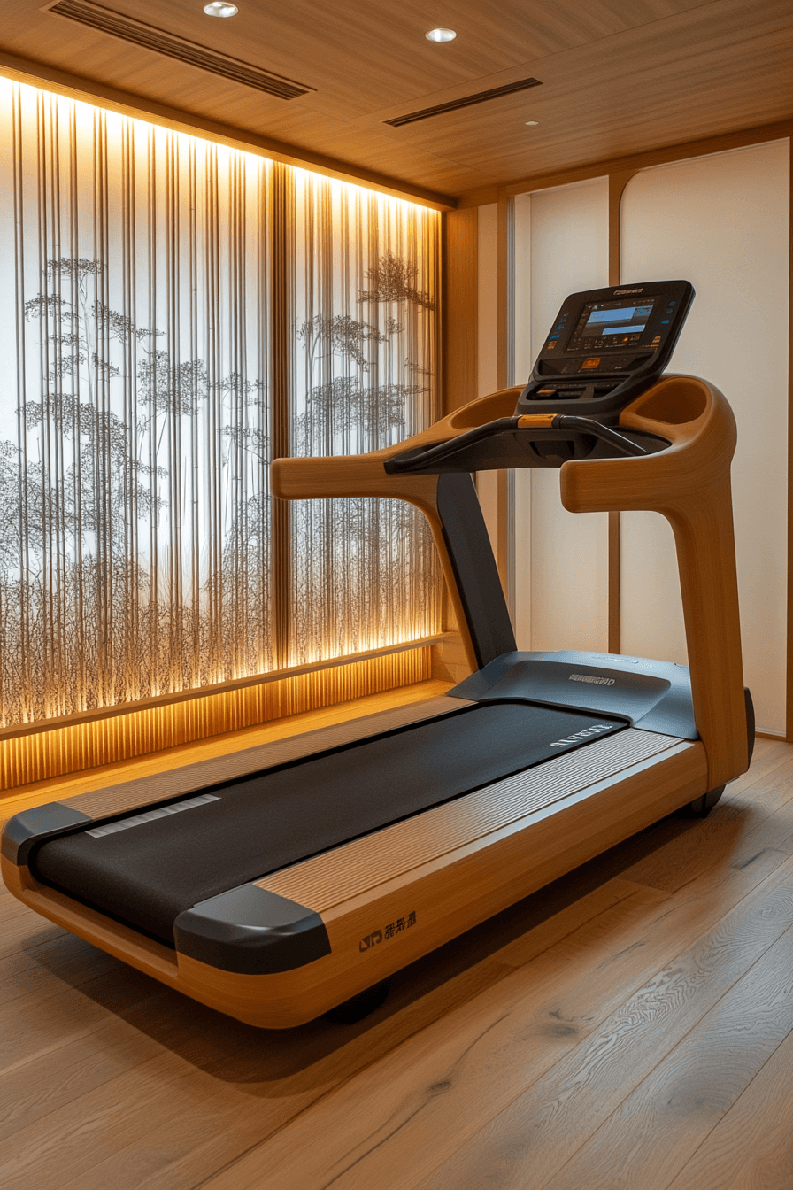 This gym is a serene retreat powered by a Scandinavian Japanese interior philosophy of balance and mindfulness. Smooth wooden floors and neutral walls keep distractions away, helping focus the mind. Modern equipment blends seamlessly with minimalist design for harmony and flow. Soft lighting adds calm energy to every workout.