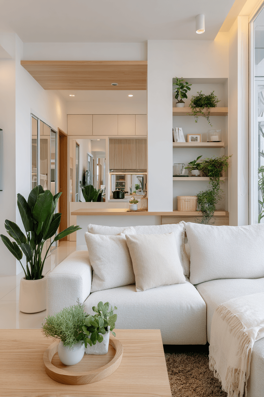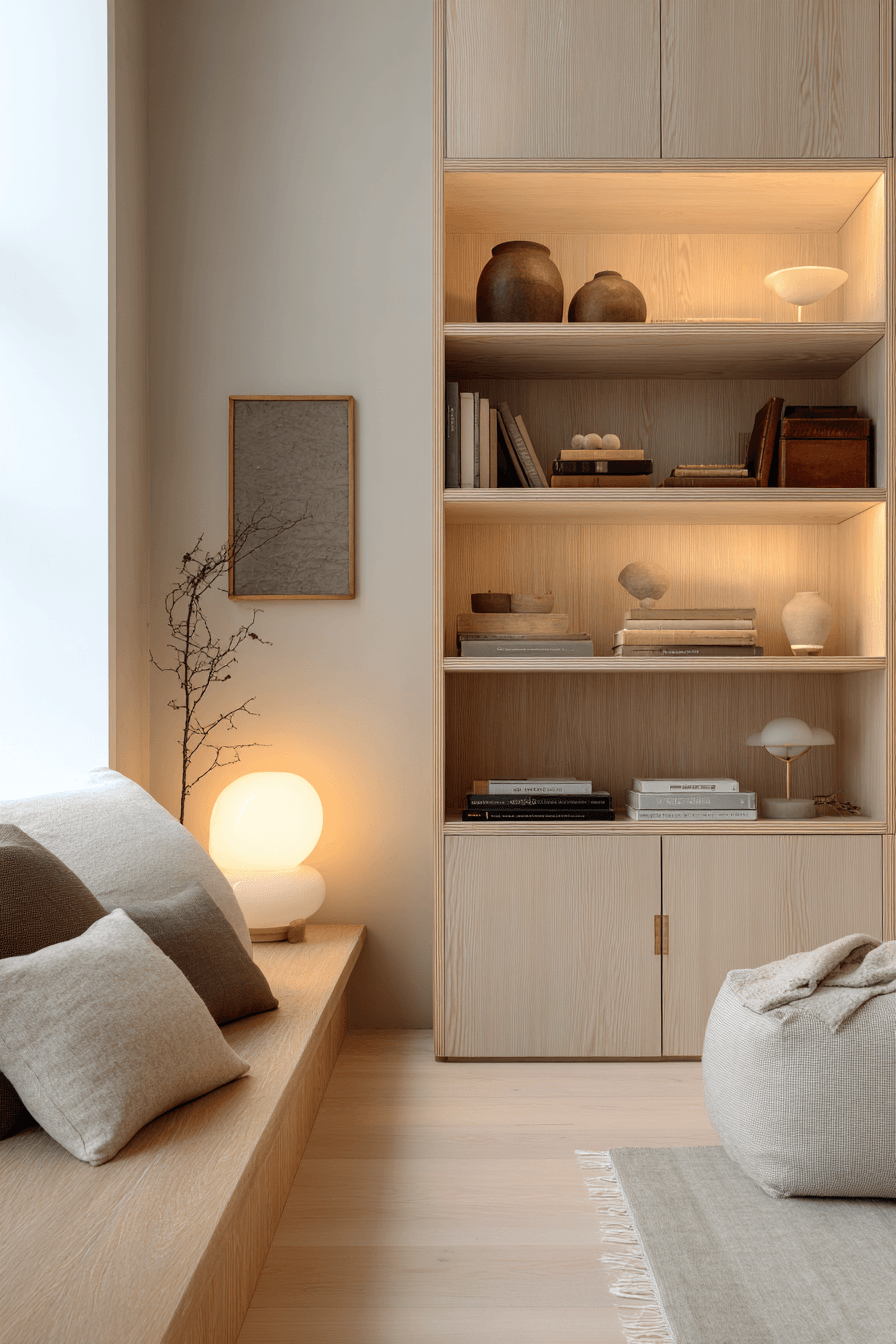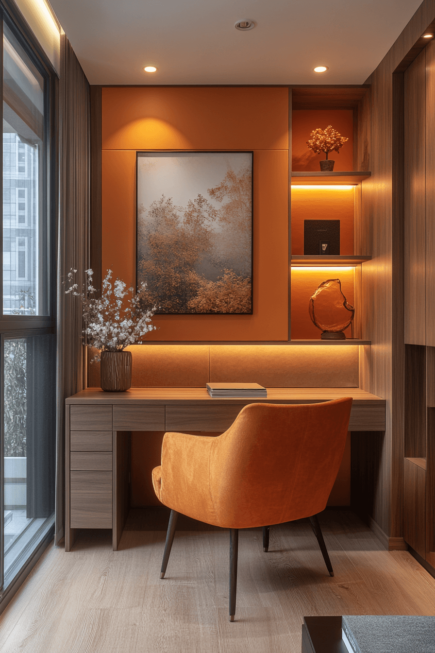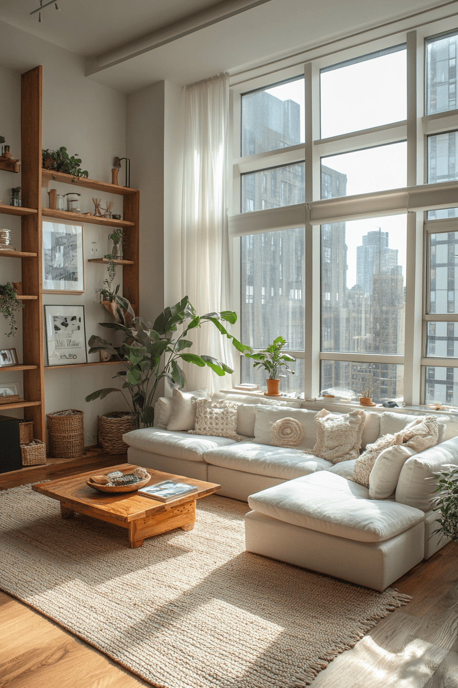 An urban calm corner creates a peaceful escape within a busy environment by reducing visual clutter and noise. Soft tones, minimal decor, and simple furniture help establish a sense of calm. This small apartment inspiration focuses on creating a quiet, restorative zone within a compact layout. Natural materials like wood or stone add grounding warmth. A comfortable chair or small seating area encourages relaxation. Gentle lighting enhances the soothing atmosphere without overpowering it. The mood is serene, grounded, and deeply calming. Explore how to create your calm corner.