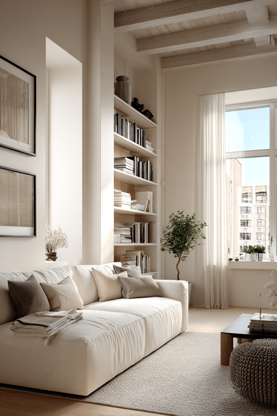 Neutral compact living relies on soft tones and layered textures to create depth without clutter. Natural materials like wood, linen, and stone introduce warmth while maintaining a light palette. This small apartment inspiration works by keeping everything visually cohesive and easy on the eye. Clean-lined furniture prevents the space from feeling heavy. Subtle contrast in textures adds interest without overwhelming the layout. Thoughtful lighting enhances the softness of the tones. The atmosphere is relaxed, timeless, and effortlessly livable. Click to embrace neutral living.