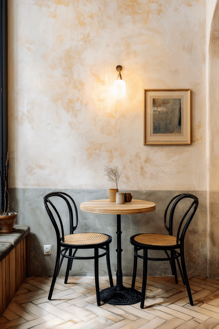 Inspired by cozy cafés, this dining setup features a petite table, comfortable seating, and warm lighting. Neutral tones paired with subtle décor create a relaxed and inviting vibe. The layout feels intimate and perfect for quiet meals or casual moments. It brings a touch of charm into everyday dining. These small dining room ideas capture that effortless café atmosphere. Recreate this cozy experience right at home.