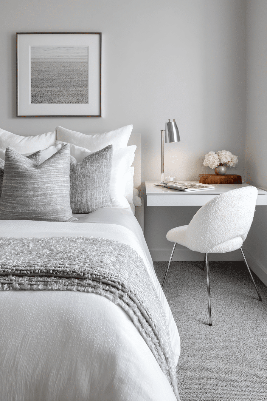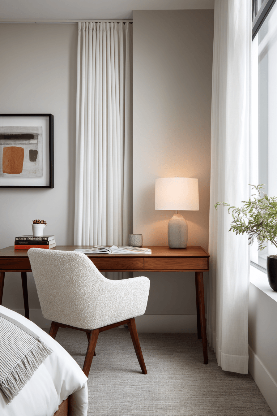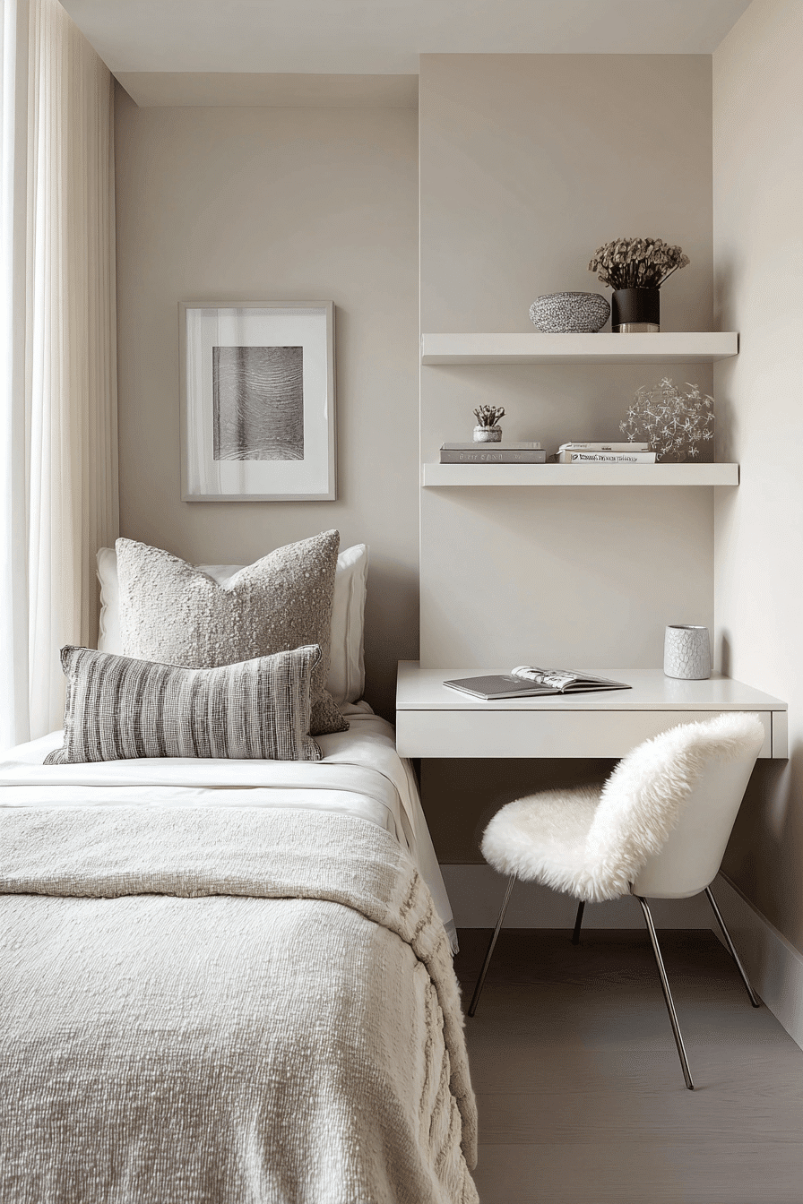 A functional focus hideaway transforms a small home office guest room into a distraction-free zone. Thoughtful layout planning separates work and rest areas while keeping the design cohesive. Neutral tones and subtle textures create a calming backdrop for productivity. Clever storage solutions ensure everything stays organized and within reach. The room feels efficient, modern, and welcoming for guests. Discover more focus-driven room designs now!