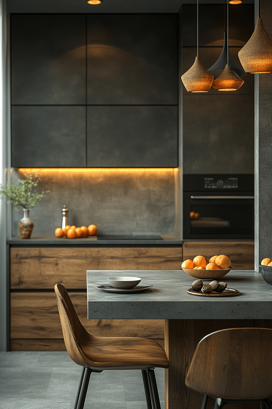 Concrete textures bring a bold, modern edge into a compact kitchen corner, offering a unique alternative to traditional materials. The sturdy surface adds depth and character, becoming a statement piece without needing excessive decoration. Paired with streamlined seating and neutral tones, the overall look remains balanced and intentional. These small kitchen table ideas work by introducing strong materials in a controlled, minimalist way that doesn’t overpower the space. Adding warm lighting or soft accents can soften the industrial feel for better balance. The mood feels grounded, contemporary, and effortlessly cool. Explore how concrete can redefine your kitchen vibe.