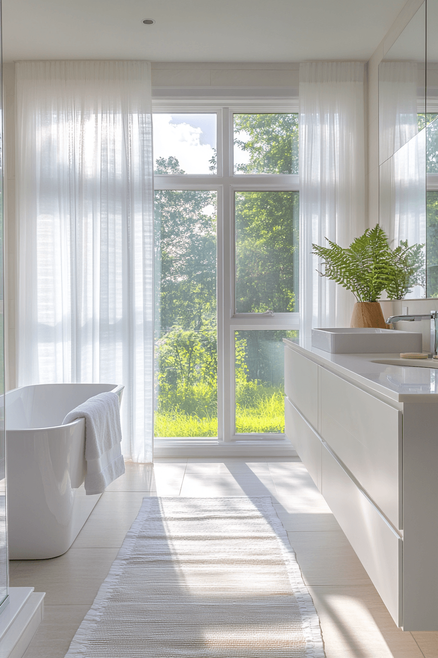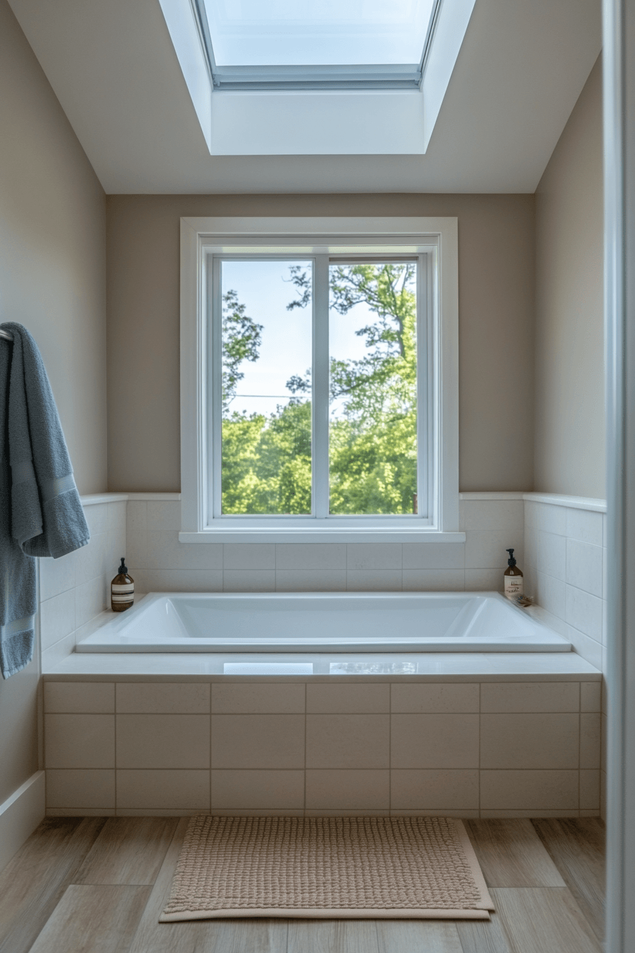 Natural light becomes the highlight, filling the space with brightness and energy from morning to evening. Light surfaces and reflective materials enhance the glow even further, making every corner feel more open. The room feels fresh, airy, and uplifting throughout the day without needing heavy artificial lighting. Minimal decor ensures nothing blocks the flow of light, keeping the layout clean and breathable. Sheer window treatments or frosted glass can maintain privacy while still letting sunlight pour in. These small master bath ideas rely on brightness to make the space feel larger and more inviting. Explore how light transforms your space.
