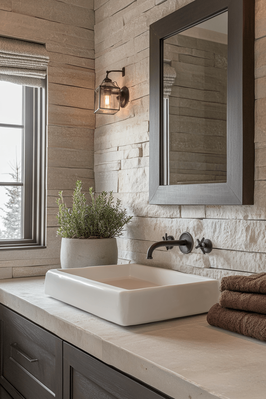 Stone textures bring depth and character while keeping the palette grounded and calming. Smooth surfaces paired with subtle grain patterns add visual interest without clutter. The layout remains simple, allowing the materials to take center stage. Soft lighting highlights the natural details and enhances the cozy feel. Incorporating stone in small doses keeps the design refined rather than overwhelming. These small master bath ideas show how texture can elevate a compact space effortlessly. Click to discover this refined look.