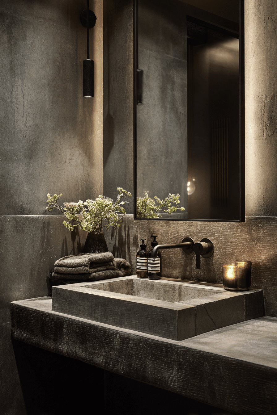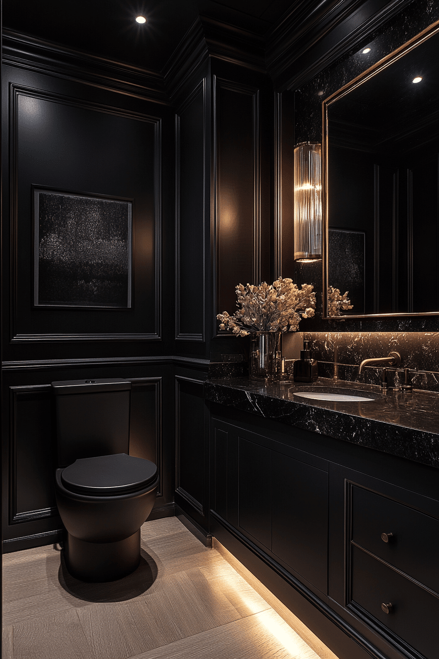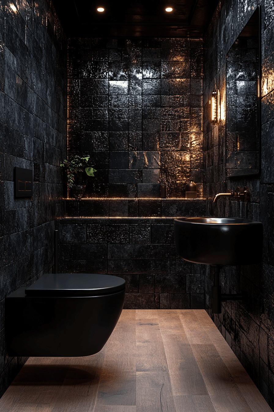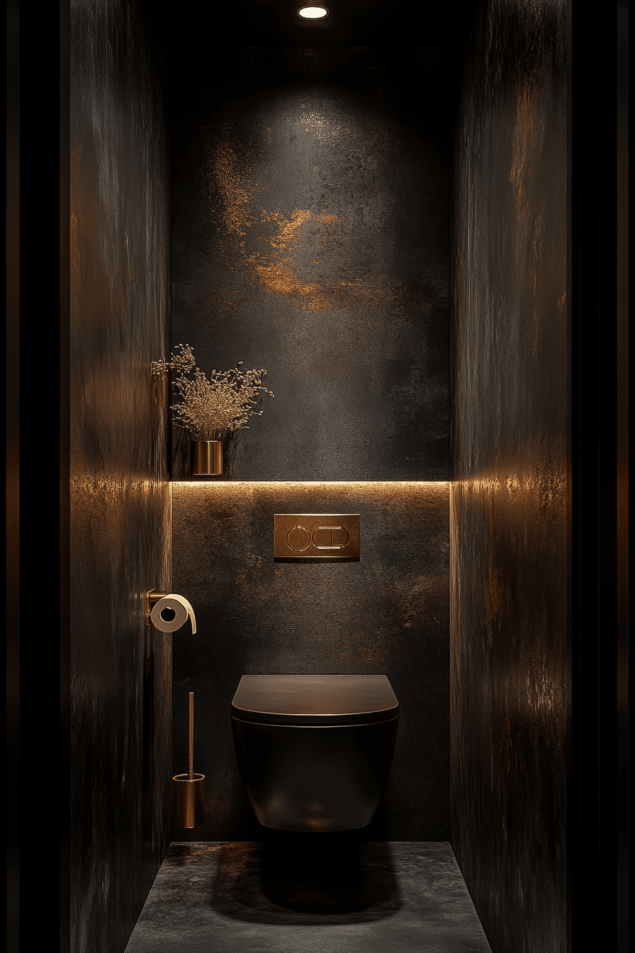 Step into the world of bold, atmospheric design with these 25 small moody bathroom ideas that prove compact spaces can make a dramatic statement. Dark palettes, rich textures, and layered lighting come together to create intimate retreats that feel luxurious rather than cramped. From velvet tones and matte black finishes to smoky mirrors and marble accents, each design embraces depth and shadow to transform your bathroom into a sophisticated sanctuary. Whether you’re drawn to minimalist noir elegance or warm, textured havens, these ideas show how to maximize style and mood in even the smallest spaces.